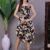 Effortlessly stylish dress with a vibrant abstract print, tie-up shoulder straps, and a chic high-low handkerchief hemline ? perfect for casual days or evening gatherings.