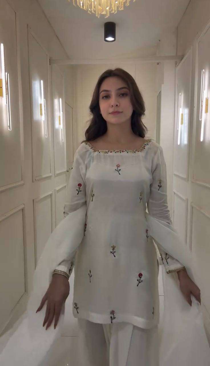 Women’s Raw Silk Floral Printed Straight Kurti With Salwar and Dupatta Set